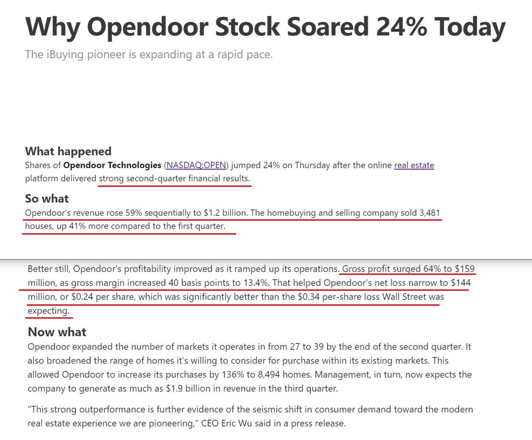 이날 오픈도어는 실적발표를 하였는데 zillow와 다르게 성장하는 모습을 보여주었다. 3분기에 오픈도어는 1,5000채가 넘는 부동산을 구입하였고 약 6,000채의 주택을 판매했다. 매출이 전년 대비 91%나 증가한것이다. 오픈도어의 비즈니스는 질로우와 다르게 상대적으로 효율적인 방식으로 확장하고 있다는 것을 증명했다고 할 수 있다.
