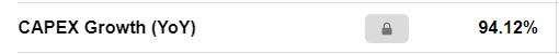 capex는 미래를 위한 투자로 공장을 짓거나 설비들 사들이는 것 등이다. 신생기업일수록 capex 지출이 큰 편이며 미래에 많은 투자를 한다. CAPEX가 94.12%나 늘었다. 기업의 판매활동이 활발하다는 것을 예측할 수 있다.