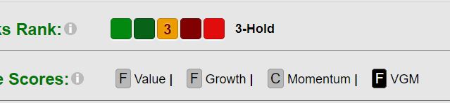 (1) 기업에 대한 점수는 F 이고 (VGM = 종합점수) 전문가들도 아직은 애매한지 HOLD 의견을 주고 있다.
