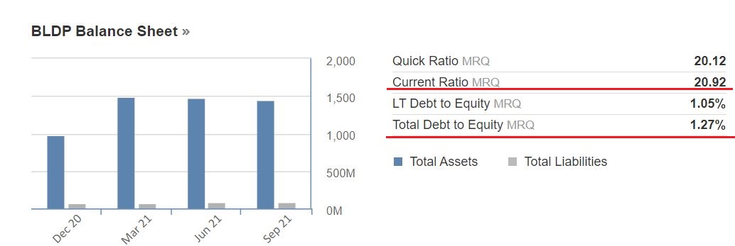 p/e ratio 와 forward p/e ratio 는 지난 혹은 향후 12개월 만들어낸 이익에 비해 시가총액이 얼마나올라있는가를 나타내는 지표로 현재 BLDP는 적자기업으로 측정불가.(어디서 본 똑같은 표인데...plug와 같다...)