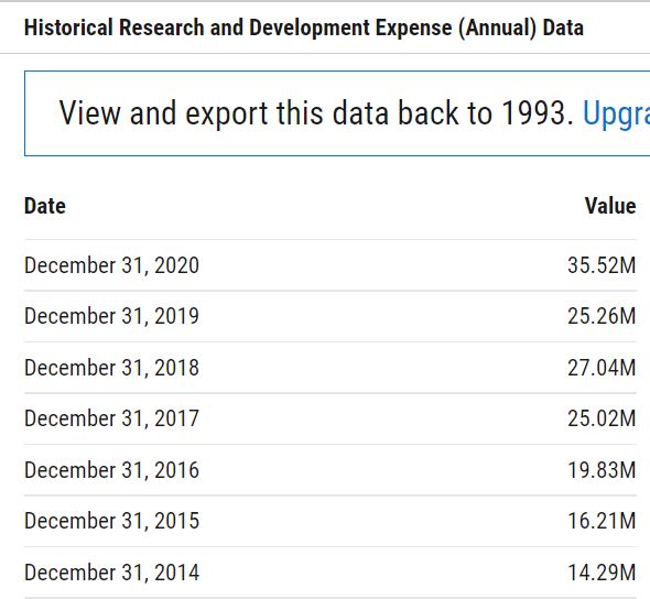 연구개발비용은 지속적으로 늘어나는 좋은 모습이다. 표에는 없지만 2021년 약 40M으로 많은 투자를 하였다.